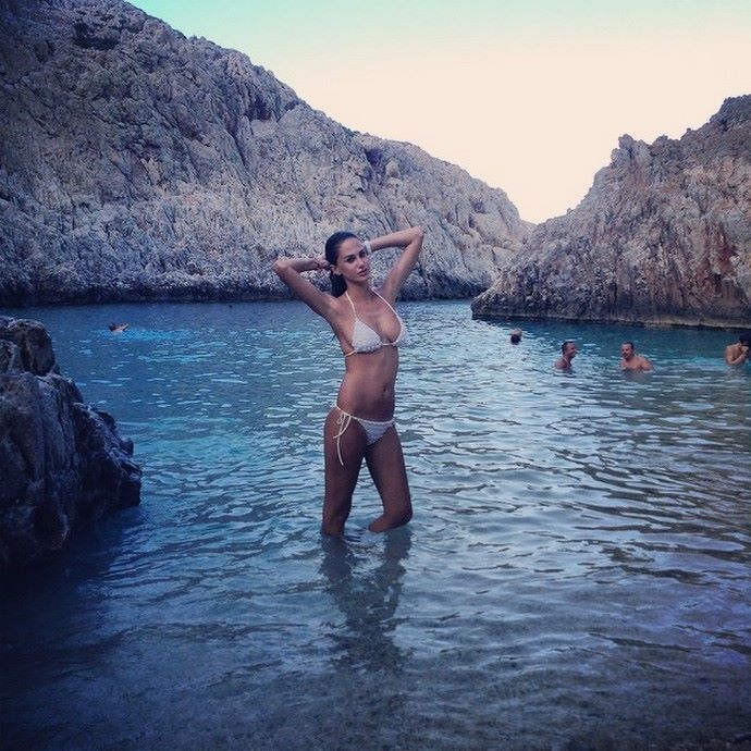 Η παραπάνω φωτογραφία είναι τραβηγμένη στο Σεϊτάν Λιμάνι στα Χανιά. Για να κατέβεις πρέπει να κάνεις ένα είδος ελαφράς κατάβασης που ακολουθείται από δυσκολότερη ανάβαση και καταλήγει σε εκτενές λαχάνιασμα. Εκείνη την ημέρα, εκείνη τη στιγμή που η Σύλβια πόζαρε, ο θρύλος -όχι ο ολυμπιακός- λέει ότι 100 άντρες έκαναν ρεκόρ κατάβασης και βρέθηκαν σε 10'' στην παραλία.