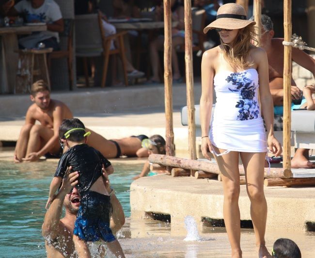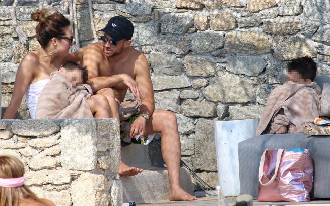 Ο φωτογραφικός φακός εντόπισε το λαμπερό ζευγάρι μαζί με τα παιδάκια τους στο SantAnna της Μυκόνου να απολαμβάνουν χαλαρές στιγμές.