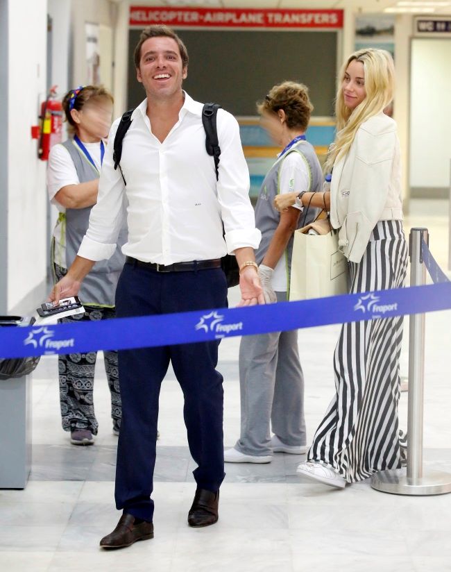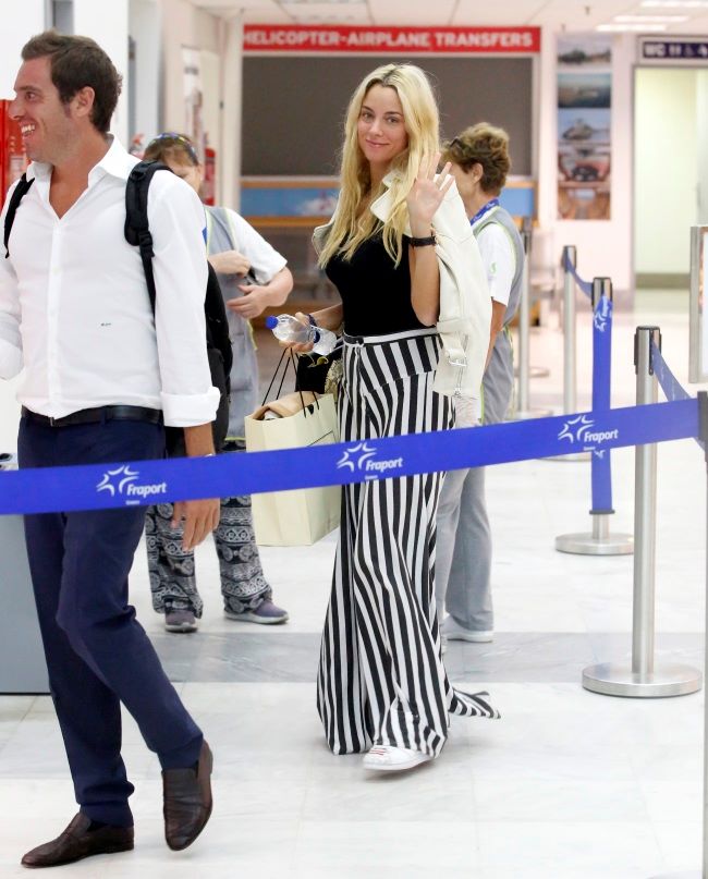 Η διάσημη παρουσιάστρια και ο σύζυγός της, Δημήτρης Θεοδωρίδης, εθεάθησαν στο αεροδρόμιο, λίγο πριν το τέλος Σεπτεμβρίου, ενώ ήδη η φουσκωμένη κοιλίτσα της Δούκισσας Νομικού είχε κάνει την εμφάνισή της.