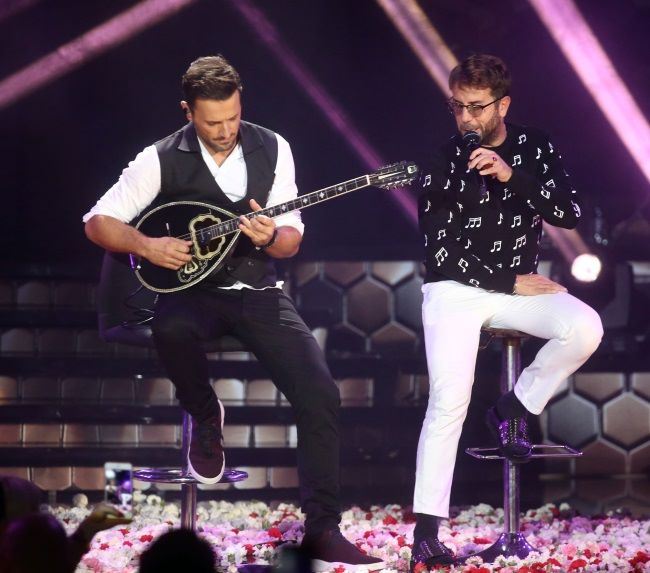 Ο Νίκος Βέρτης επί σκηνής με τον Γιώργο Μαζωνάκη