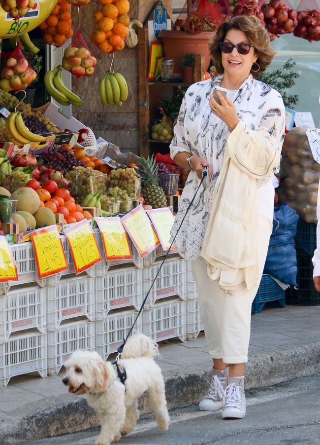 Η Άντζελα Γκερέκου κάνοντας βόλτα στη Βούλα με το σκυλάκι της