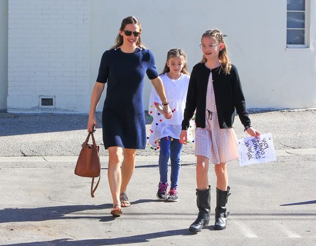 Η Jennifer Garner μαζί με τις δύο της κόρες έξω από την εκκλησία, όπου επισκέπτονται κάθε εβδομάδα.