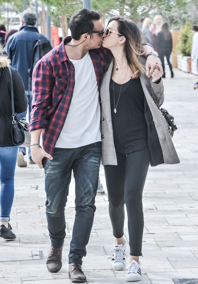 Η εγκυμονούσα Ήβη Αδάμου και ο Μιχάλης Κουινέλης έξω από το Baraonda
