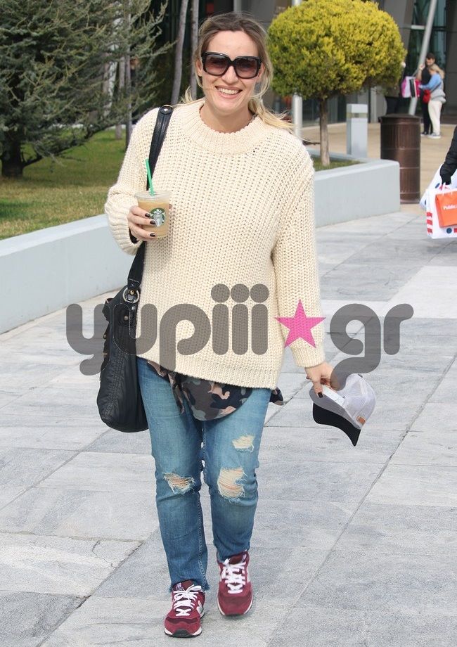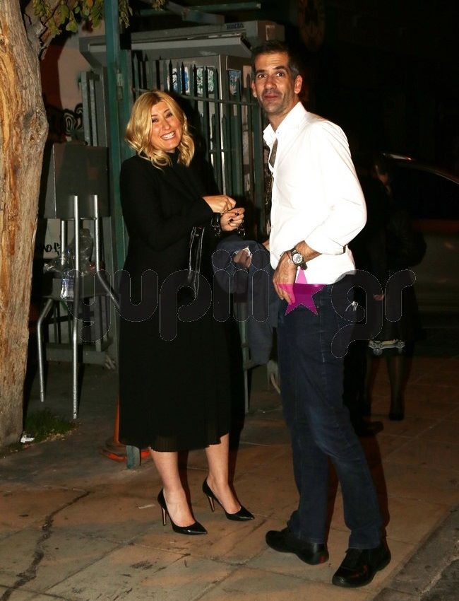 Η εγκυμονούσα Σταματίνα Τσιμτσιλή με τον Θέμη Σοφό έξω από το Baraonda