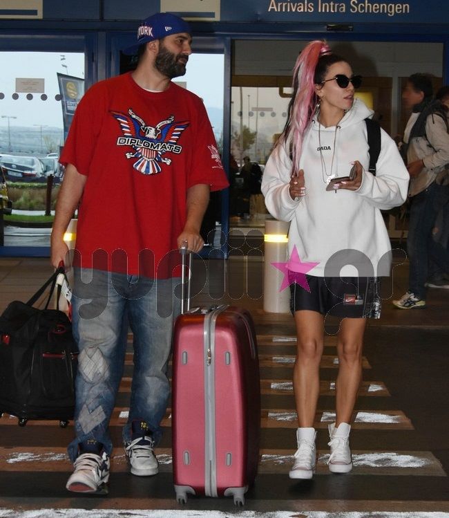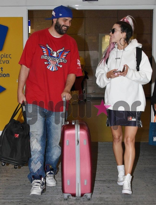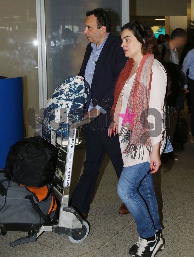 Ο Χρήστος Χωμενίδης και η Γωγώ Μπρέμπου στο αεροδρόμιο της Αθήνας (2)