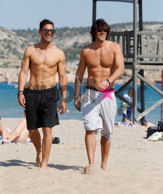 Ο Νίκος Αναδιώτης και ο Γιάννης Σπαλιάρας με μαγιό στη Βουλιαγμένη