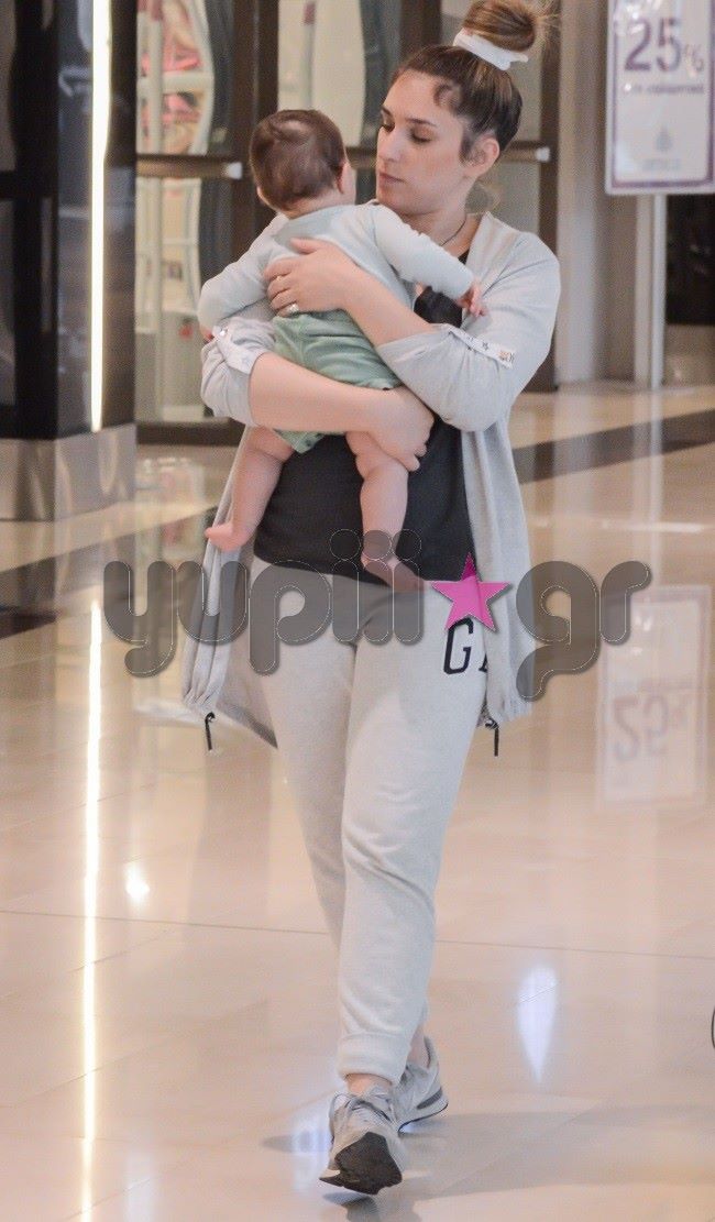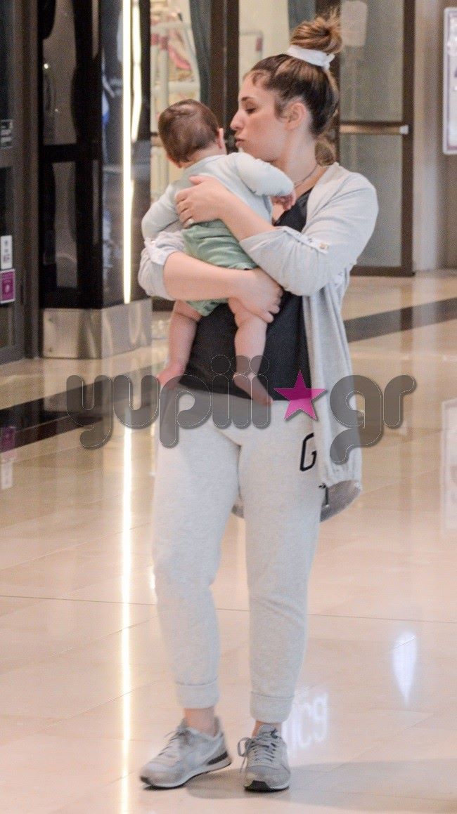 Ντυμένη casual κρατούσε συνεχώς στην αγκαλιά της τον μονάκριβο γιο της, απολαμβάνοντας τη βόλτα της στα εμπορικά καταστήματα.