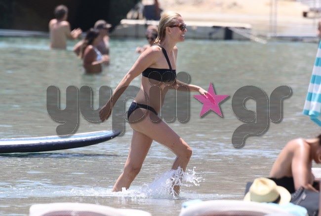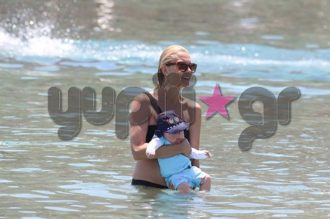 Η Βίκυ Καγιά μάλιστα κολύμπησε και με τον Κάρολο Ηλία ενώ μαγνήτισε τα βλέμματα των λουόμενων με την καλλίγραμμη σιλουέτα της πέντε μόλις μήνες μετά τη γέννηση του γιου της.