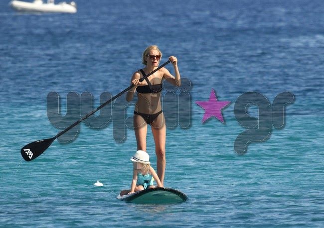 Το ζευγάρι απόλαυσε τη θάλασσα ενώ επιδόθηκε και σε θαλάσσια σπορ, αφού έχοντας μαζί τους τη μικρή Μπιάνκα έκαναν sup board στην παραλία της Ψαρούς.