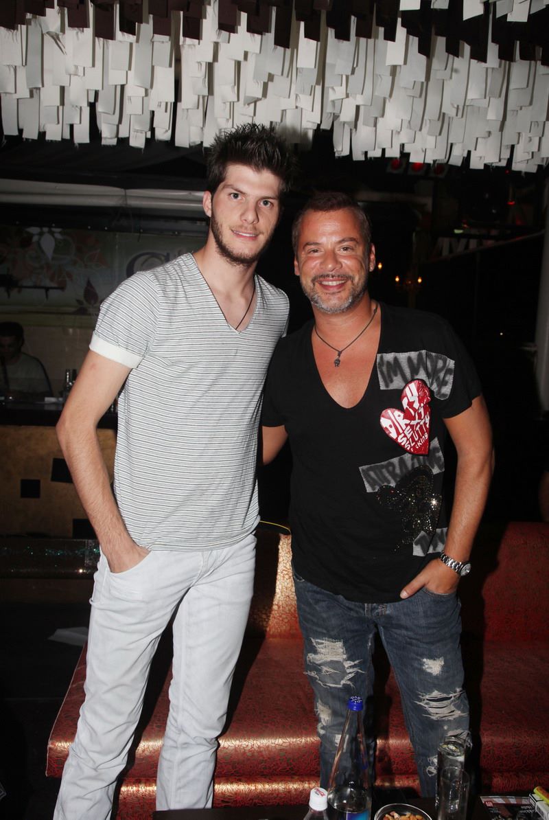 Ο Νίκος Οικονομόπουλος με τον Γιώργο Τσαλίκη -με νέο κούρεμα- στο Villa Mercedes.