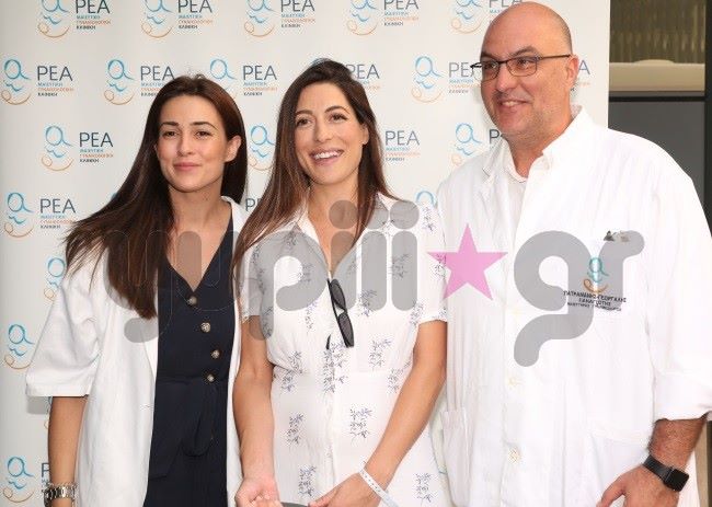 Η Φλορίντα Πετρουτσέλι ανάμεσα στη μαία Ελένη Λινού και τον γιατρό της, Παναγιώτη Πατραμάνη- Γεωργαλή