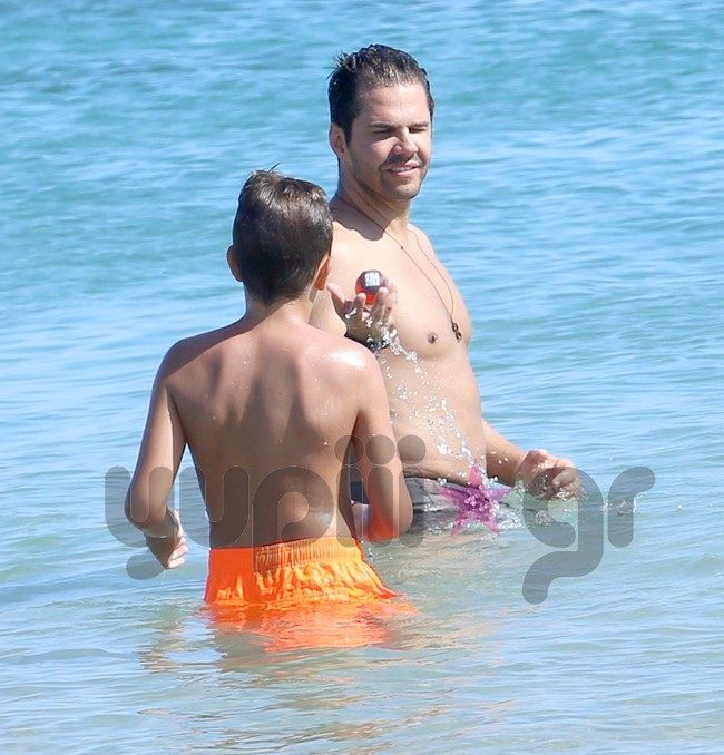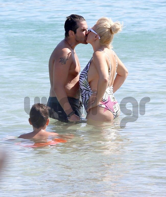Ο φωτογραφικός φακός του Yupiii εντόπισε το ζευγάρι σε τρυφερές στιγμές σε παραλία του νησιού.