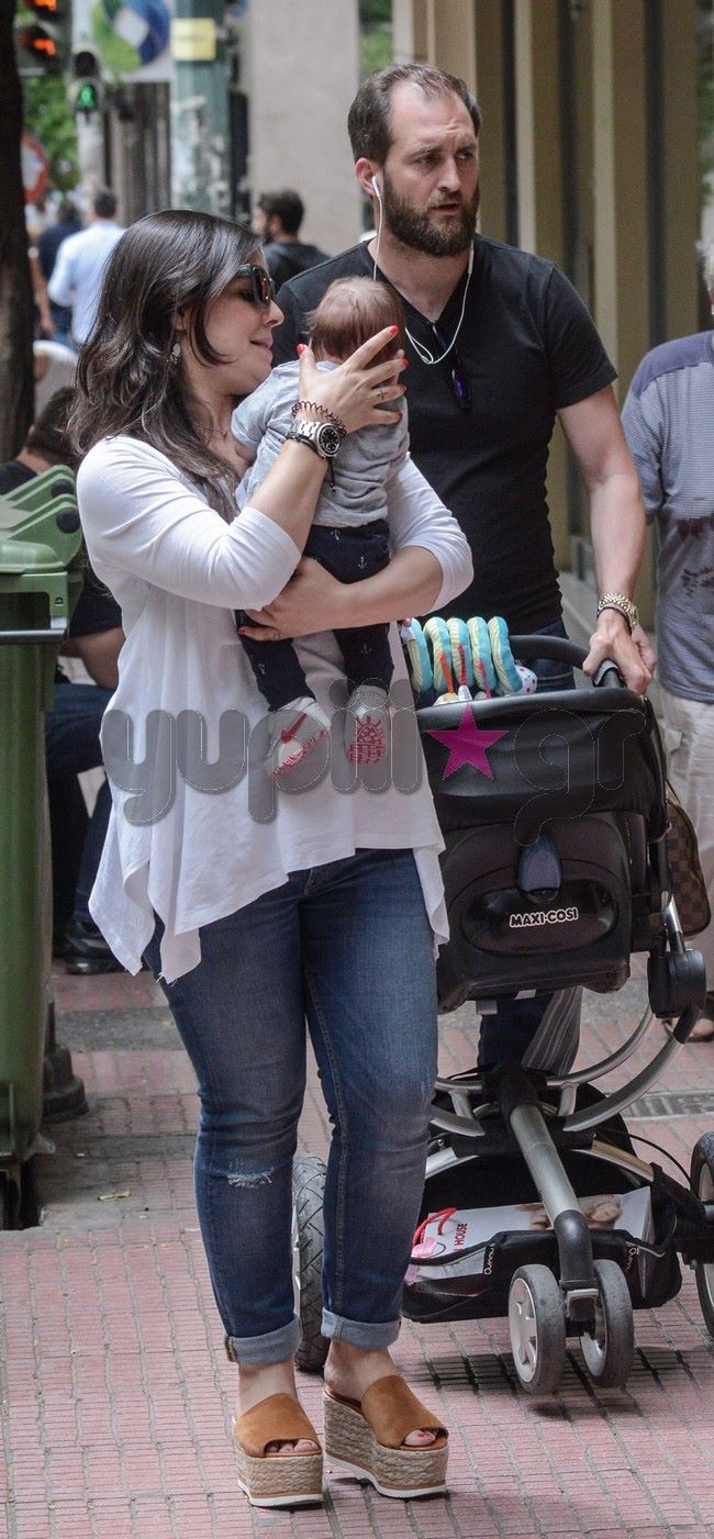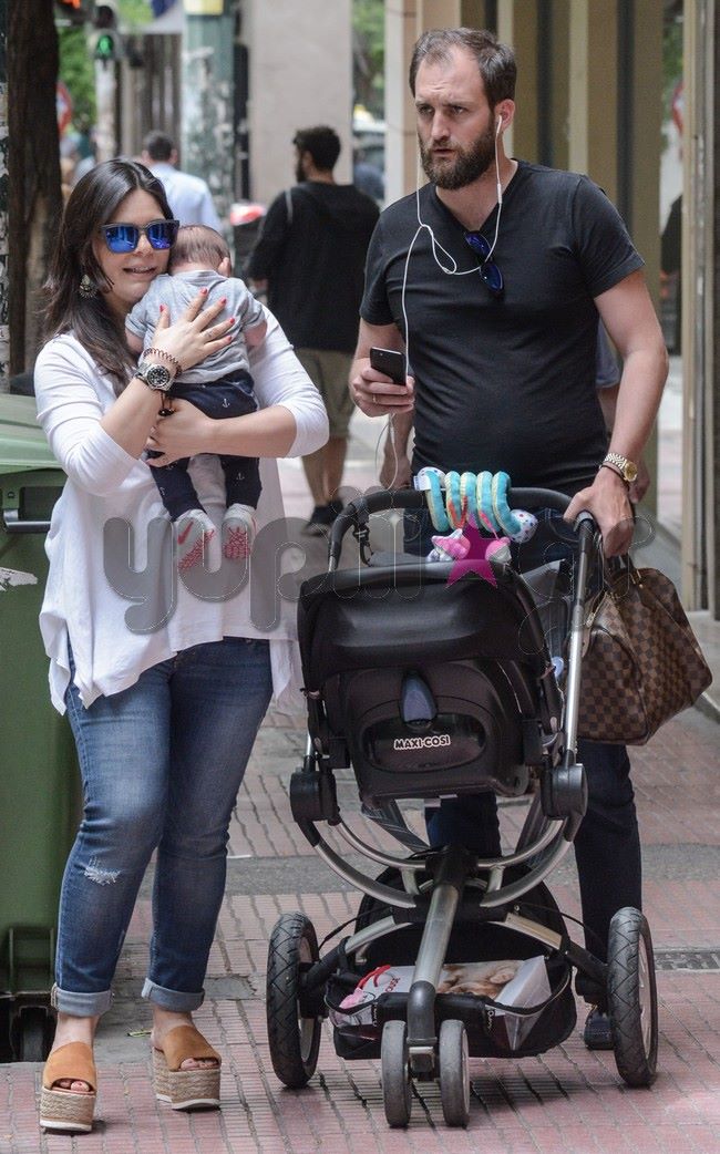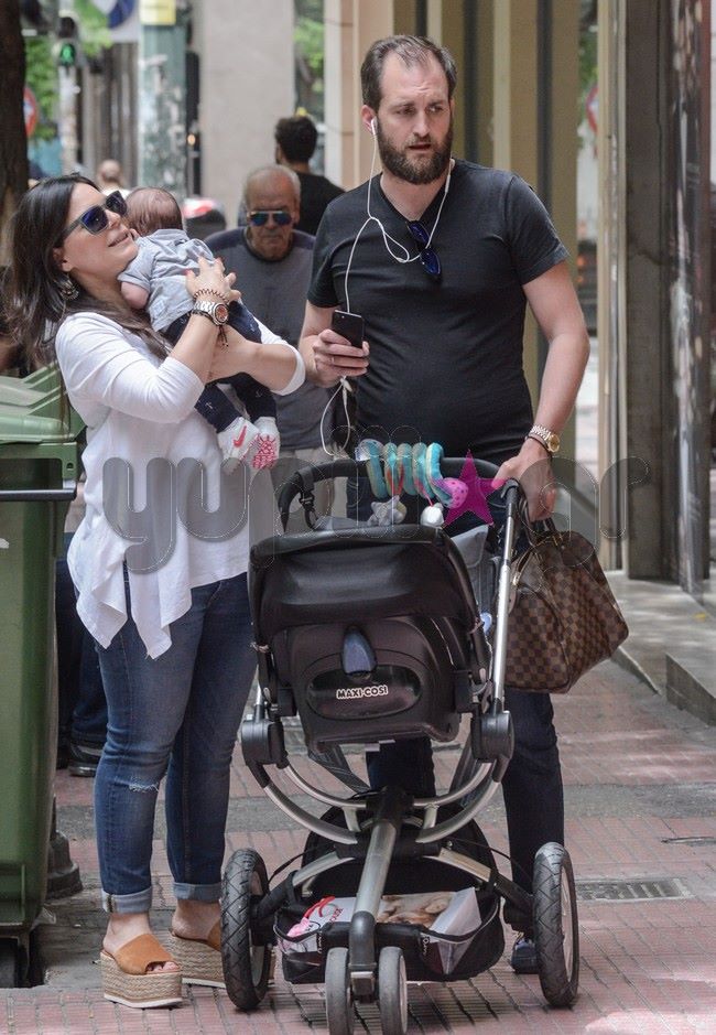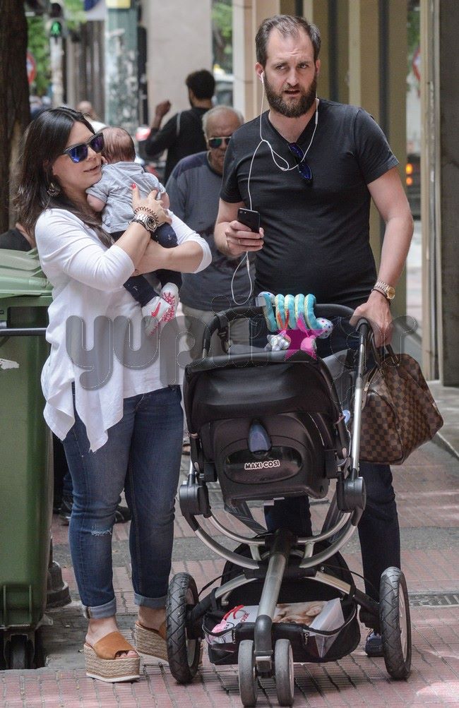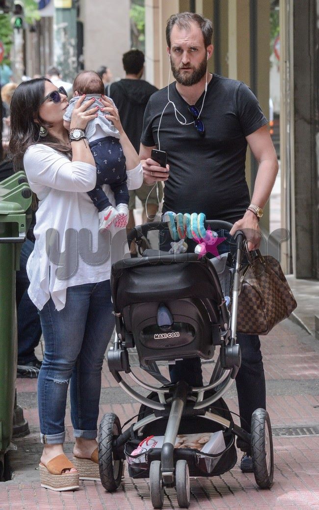 Η ηθοποιός και ο γνωστός δικηγόρος απόλαυσαν τη βόλτα τους στο κέντρο της Αθήνας, έχοντας φυσικά μαζί τους τον μόλις έξι μηνών γιο τους.