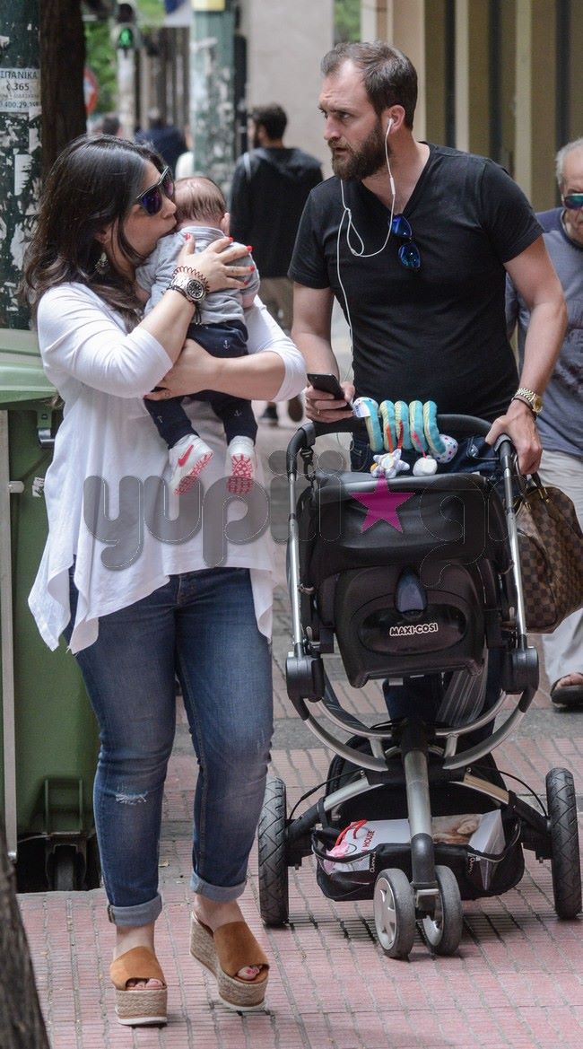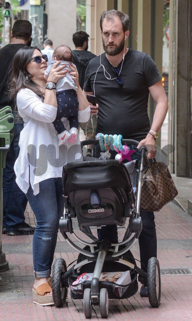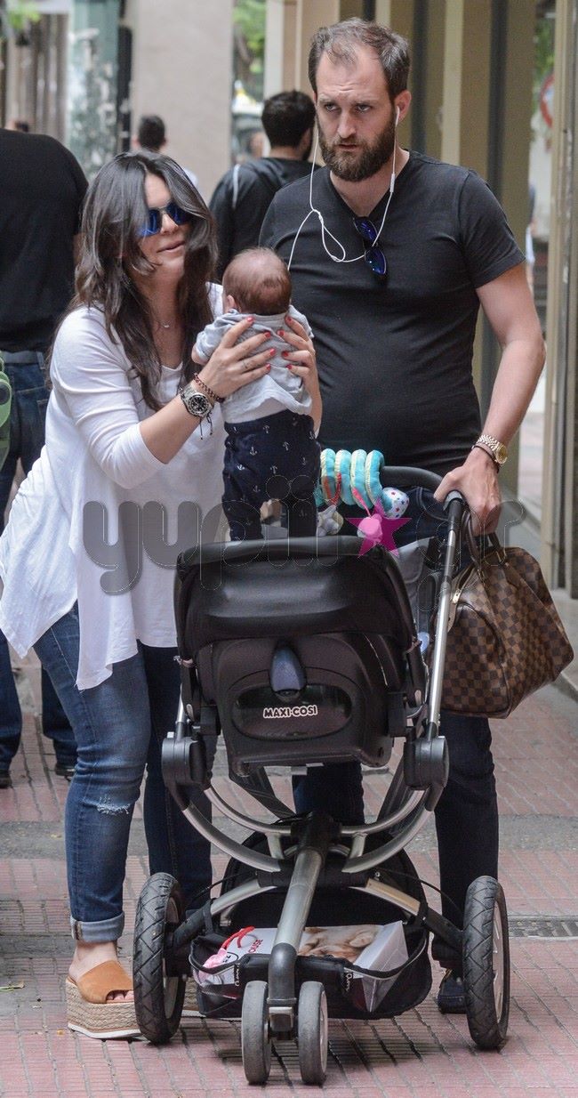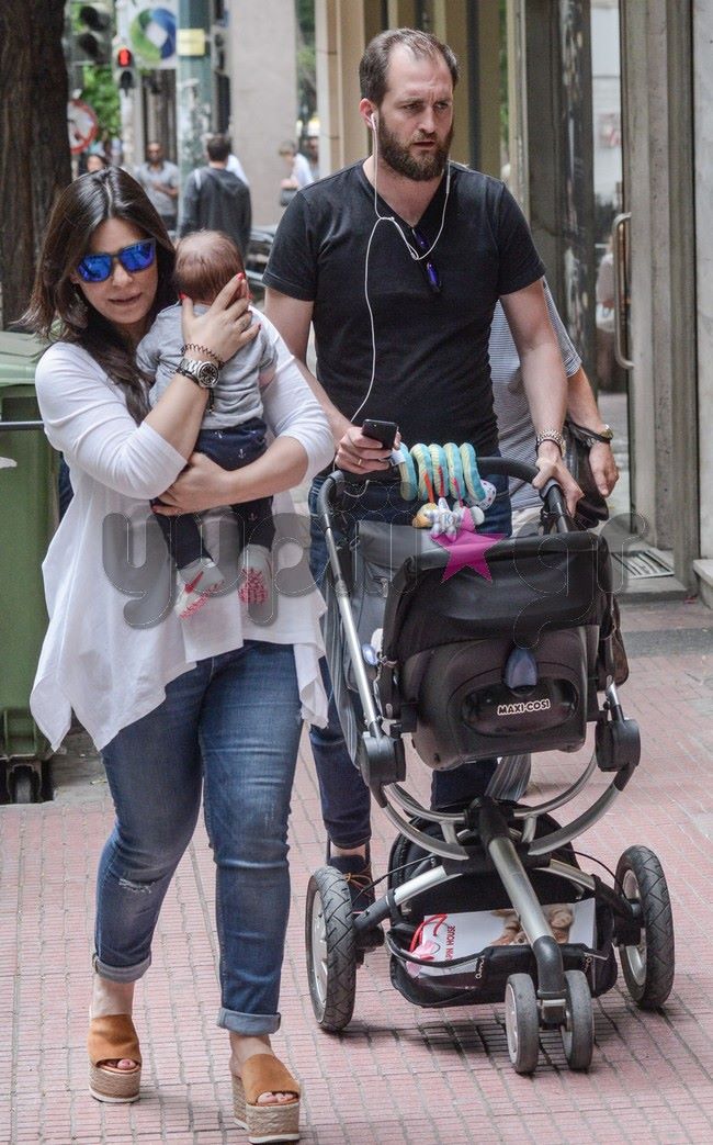 Η ηθοποιός και ο γνωστός δικηγόρος απόλαυσαν τη βόλτα τους στο κέντρο της Αθήνας, έχοντας φυσικά μαζί τους τον μόλις έξι μηνών γιο τους.