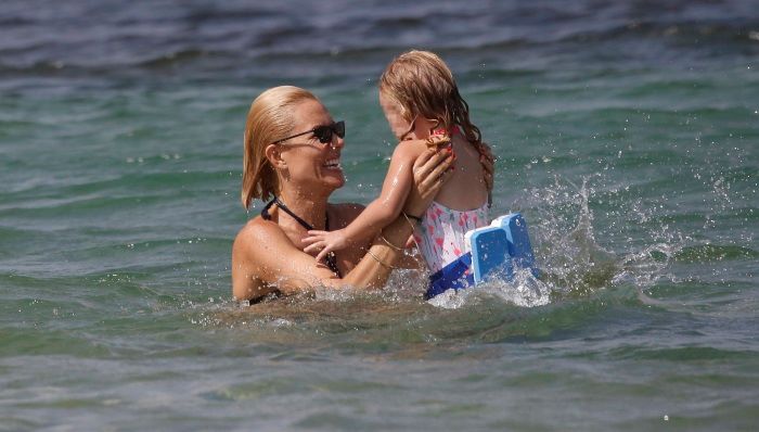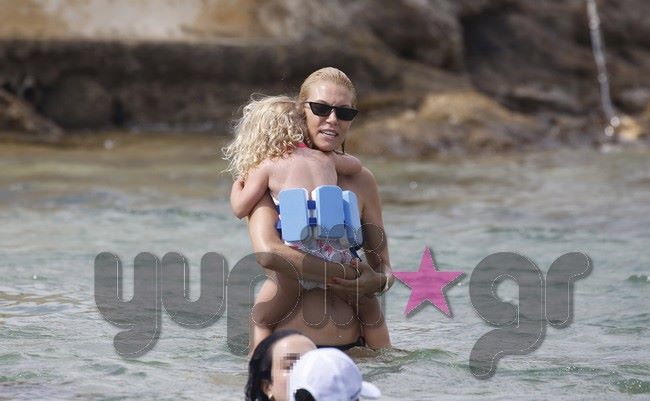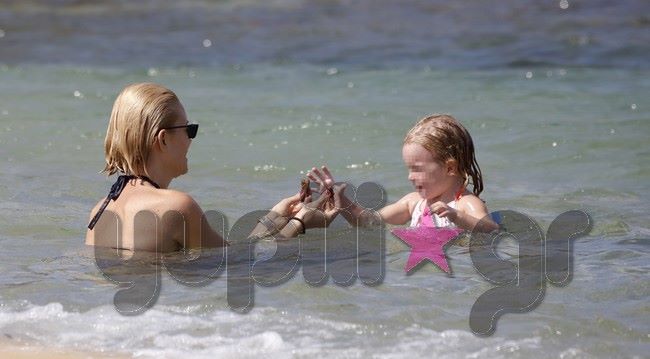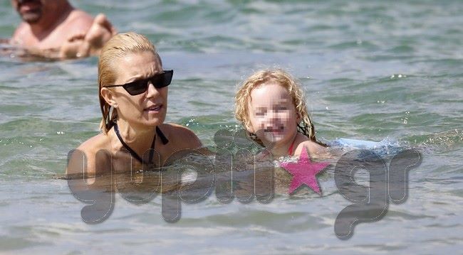 Μαμά και κόρη επισκέφθηκαν κοσμική παραλία του νησιού και κολύμπησαν παρέα, ενώ ο φωτογραφικός φακός τις απαθανάτισε σε τρυφερές οικογενειακές στιγμές.