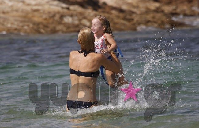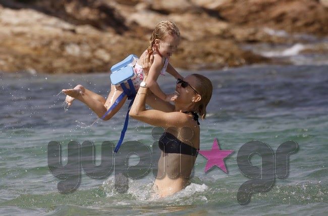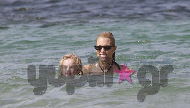 Μαμά και κόρη επισκέφθηκαν κοσμική παραλία του νησιού και κολύμπησαν παρέα, ενώ ο φωτογραφικός φακός τις απαθανάτισε σε τρυφερές οικογενειακές στιγμές.