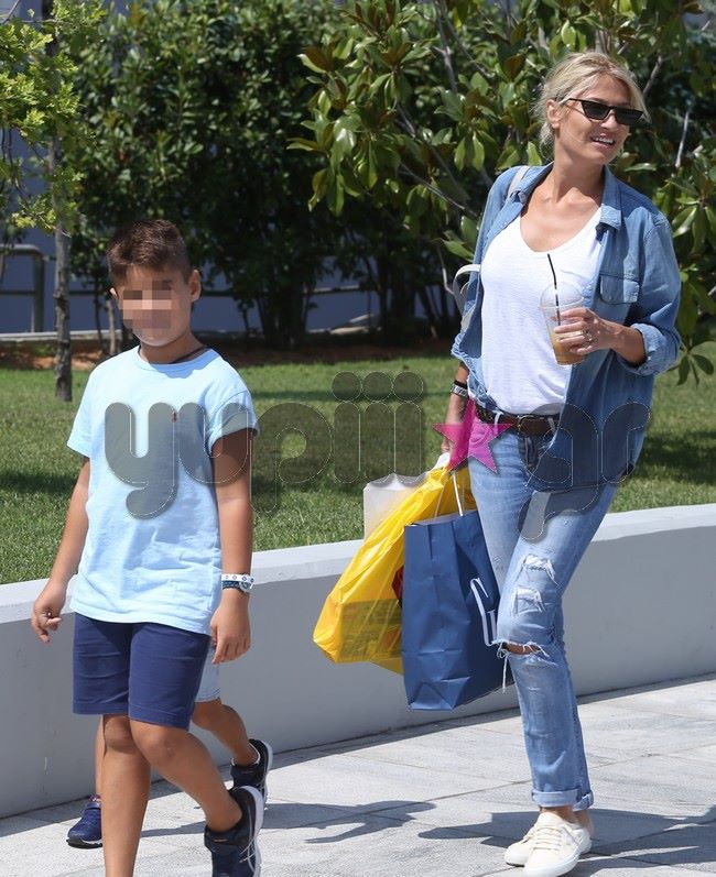Ωστόσο, βρήκε λίγο χρόνο και επισκέφθηκε γνωστό εμπορικό κέντρο των βορείων προαστίων με τους δυο γιους της, Δημήτρη και Γιάννη Λιάγκα για μερικές αγορές, λίγο πριν από την νέα σχολική χρονιά.