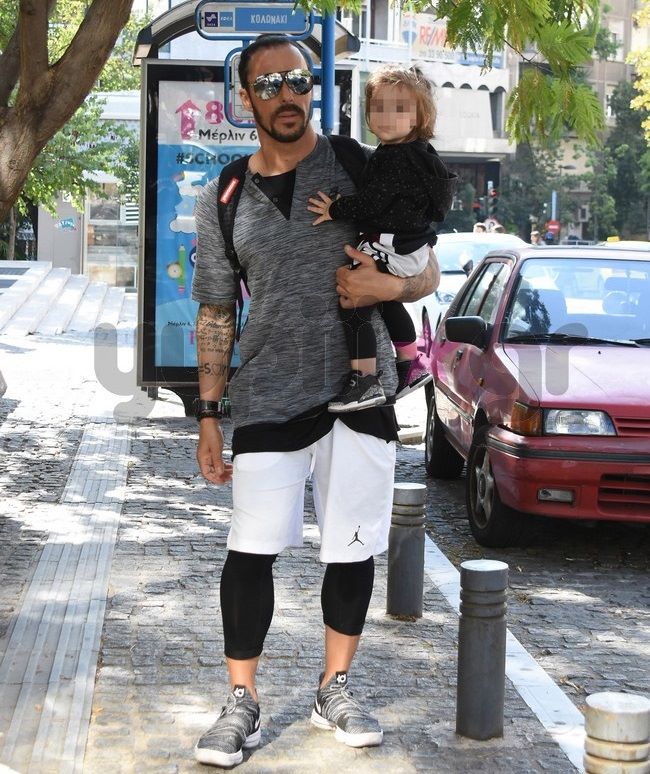 Ο Κρίς Βάλλας με τον γιο του στο Κολωνάκι