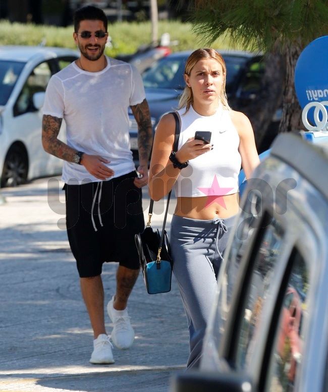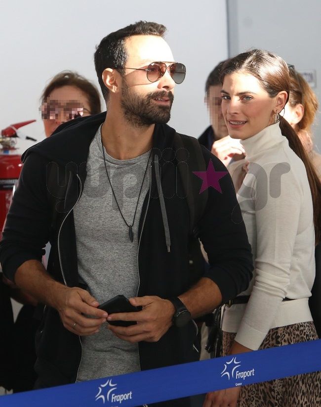 Ο Σάκης Τανιμανίδης με τη Χριστίνα Μπόμπα στο αεροδρόμιο της Μυκόνου