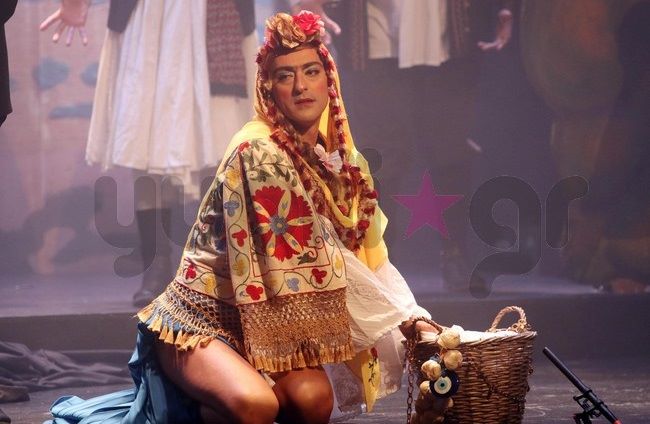 Ο Θανάσης Αλευράς ως Μαλάμω επί σκηνής