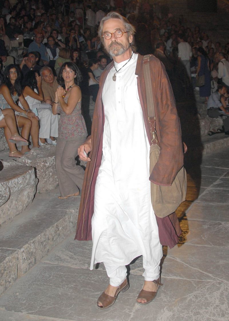 Ο Τζέρεμι Άιρονς στην Επίδαυρο με το γιο του για την πρεμιέρα της παράστασης. Την επόμενη μέρα ο ηθοποιός βρέθηκε ξανά στο Αρχαίο Θέατρο από όπου και παρακολούθησε την παράσταση από το άνω διάζωμα θέλοντας να αποφύγει τα φλας των φωτογράφων.