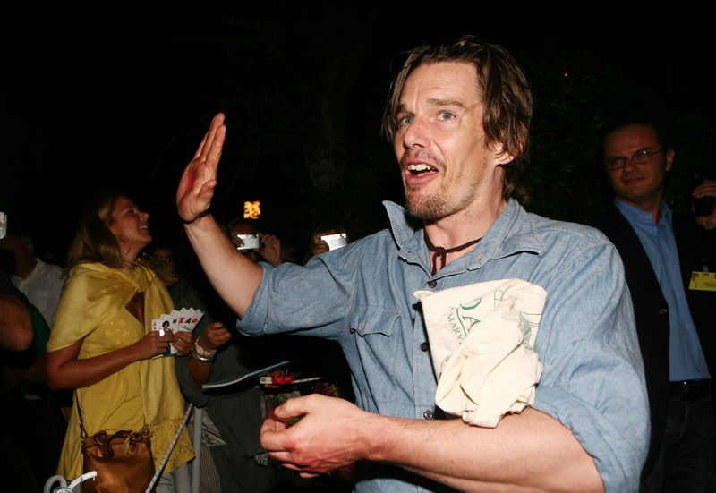 Ο Ίθαν Χοκ -ένας από τους πρωταγωνιστές της παράστασης- χαιρετά τους φωτογράφους και τους θαυμαστές που μετά το τέλος της παράστασης περίμεναν υπομονετικά για να τον συγχαρούν.