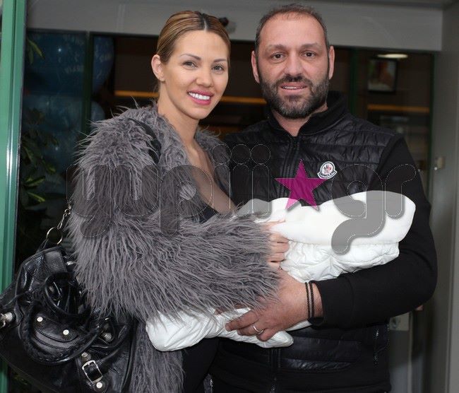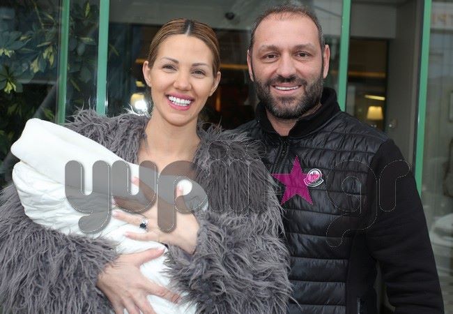 Χαμογελαστή και ευδιάθετη έλαμπε από ευτυχία κρατώντας στην αγκαλιά της τη νεογέννητη Ειρήνη, ενώ στο πλευρό της φυσικά βρισκόταν ο σύντροφός της Δημήτρης Κουσαθανάς.