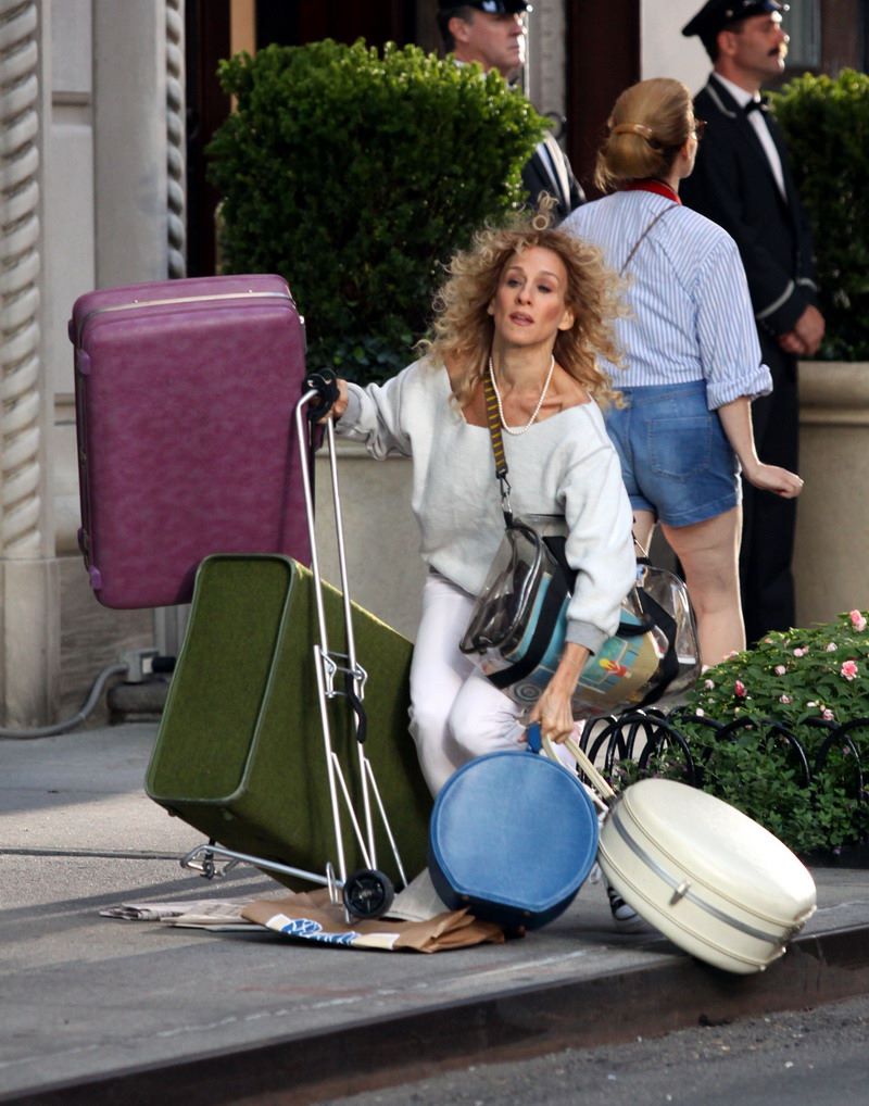 Στις φωτογραφίες η Κάρι φοράει ένα λευκό φόρεμα και πανύψηλα Christian Louboutin (τα οποία, για την ιστορία, κοστίζουν 700 ευρώ). Στην πρώτη αυτή σκηνή, που γυρίστηκε στο Μανχάταν, η Κάρι βγαίνει από το κτίριο όπου ήταν το σπίτι που είχε αγοράσει και στη συνέχεια πουλήσει μαζί με τον Τζον Τζέιμς Πρέστον ή, όπως είναι και το διάσημο ψευδώνυμό του, Mr. Big.