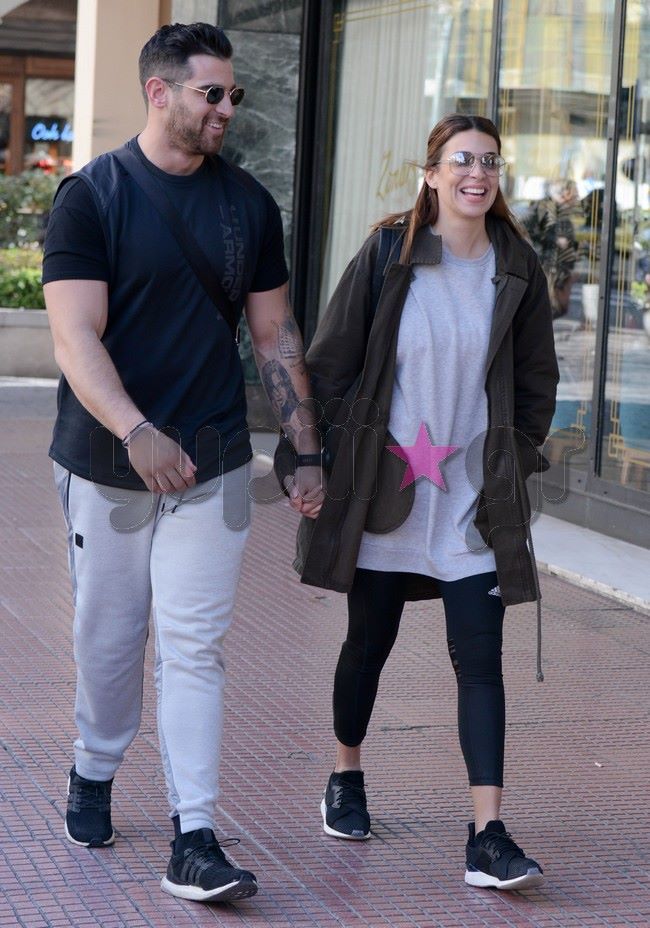 Η γνωστή τραγουδίστρια εμφανίστηκε με μια φαρδιά μπλούζα που κρύβει τη φουσκωμένη της κοιλίτσα, ενώ οι δυο τους φάνηκαν να μην ενοχλούνται από τον φωτογραφικό φακό και πόζαραν χαμογελαστοί και ευδιάθετοι στην κάμερα του Yupiii.