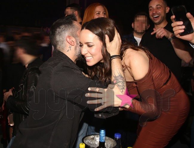 Ο φωτογραφικός φακός του Yupiii τους απαθανάτισε χαμογελαστούς και φοβερά ευδιάθετους ενώ η Καλομοίρα συνάντησε έπειτα από 15 χρόνια τον πρώην συμπαίκτη της στο Fame Story, τον τραγουδιστή Γιώργο Χρήστου, ο οποίος βρισκόταν εκεί το ίδιο βράδυ.