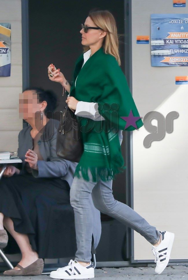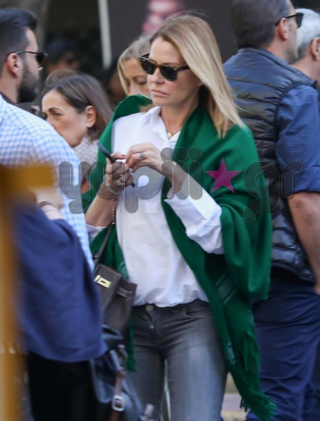 Πριν λίγες ημέρες εθεάθη να περπατάει στο κέντρο της Αθήνας ντυμένη casual και χωρίς έντονο μακιγιάζ, ενώ ο φωτογραφικός φακός την απαθανάτισε να μιλάει στο τηλέφωνό της και να κανονίζει τις τελευταίες λεπτομέρειες του γάμου της.