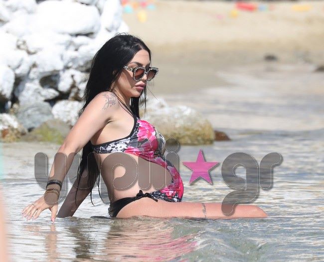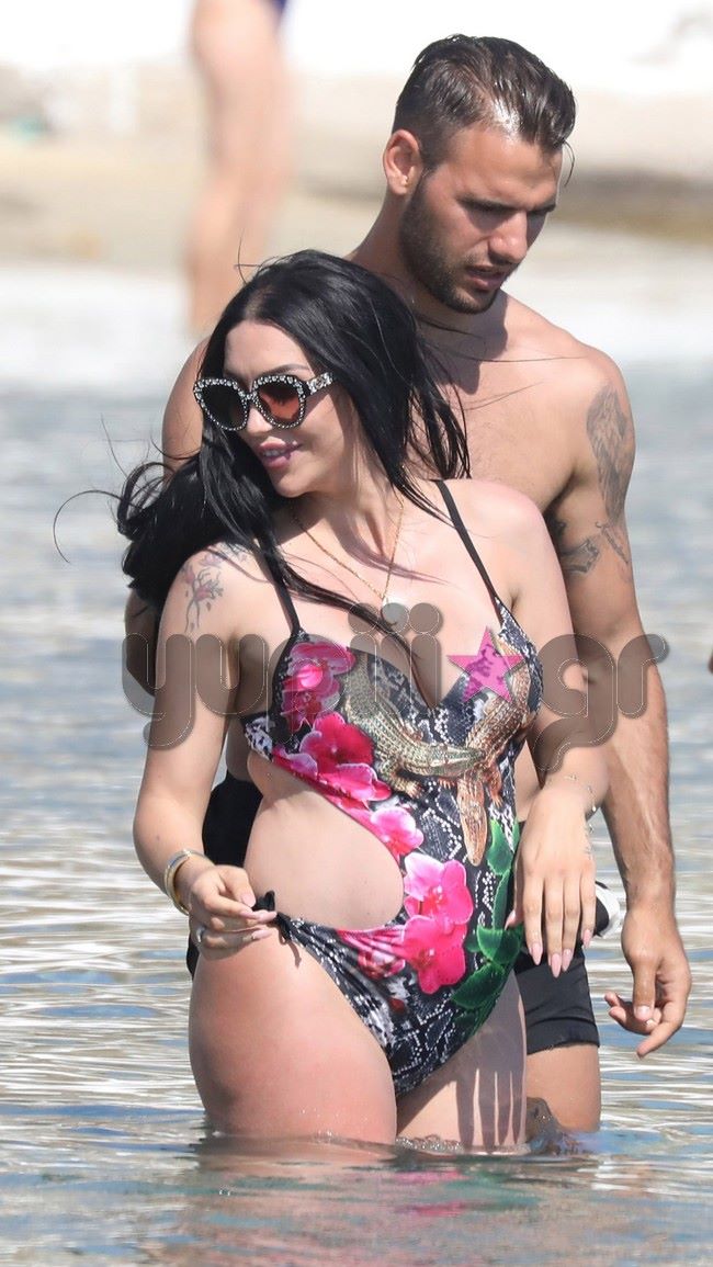 Το ερωτευμένο ζευγάρι απολαμβάνει στιγμές χαλάρωσης στη Μύκονο, λίγο πριν ολοκληρώσουν την οικογενειακή τους ευτυχία με τον ερχομό ενός ακόμα παιδιού.