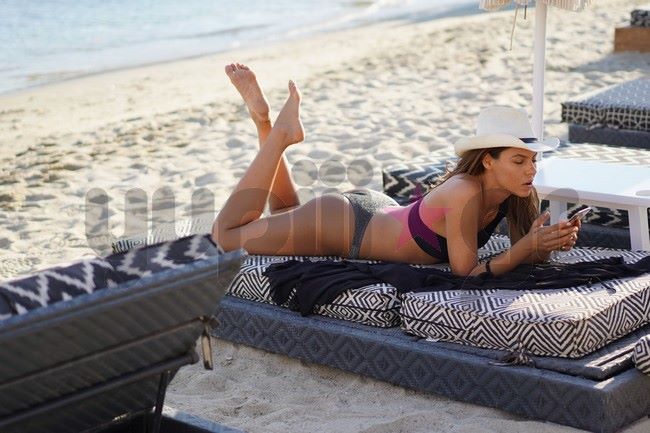 Ο φωτογραφικός φακός την εντόπισε στην παραλία του Ορνού, στο beach restaurant Pasaji, και φυσικά τα στιγμιότυπα ανεβάζουν τη θερμοκρασία.