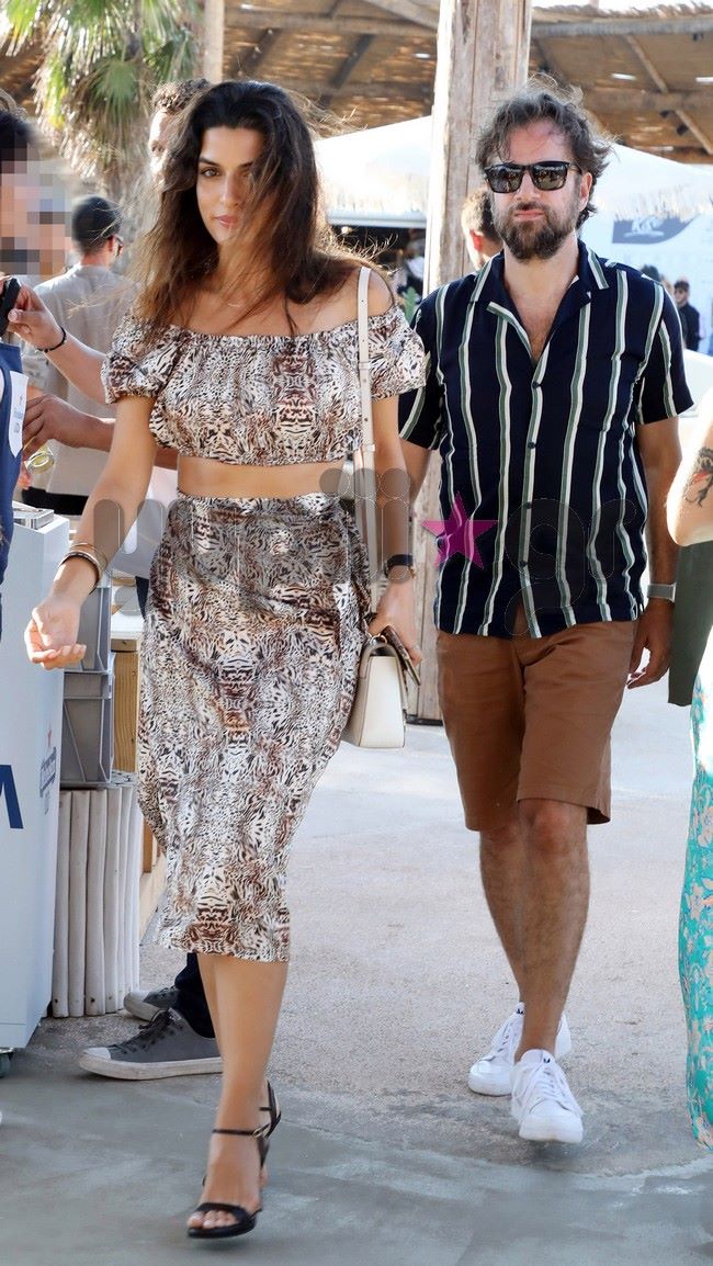 Το ζευγάρι έδωσε το «παρών» σε εκδήλωση γνωστού beach bar - restaurant του νησιού, πραγματοποιώντας μια εντυπωσιακή και άκρως καλοκαιρινή εμφάνιση που μαγνήτισε τα βλέμματα.