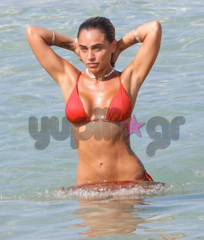 Αυτή τη φορά, φορώντας ένα κόκκινο μικροσκοπικό μπικίνι έκανε τις βουτιές της σε παραλία της Πάρου, όπου βρέθηκε τις τελευταίες ημέρες για τις καλοκαιρινές διακοπές της παρέα με φίλους.