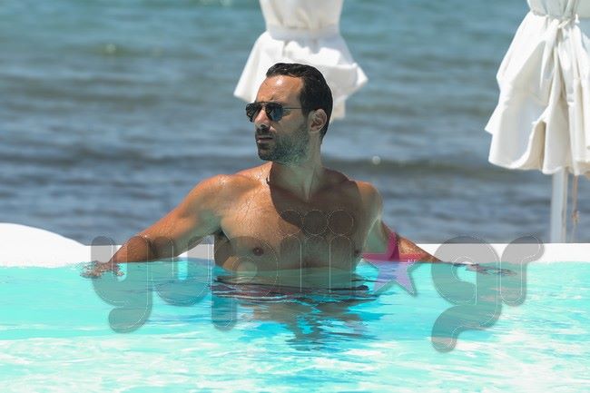 Για άλλη μια φορά τα γυναικεία βλέμματα μαγνήτισε το εντυπωσιακό και αθλητικό παρουσιαστικό του Σάκη Τανιμανίδη, ο οποίος απόλαυσε μόνος και το μπάνιο του στην πισίνα του ξενοδοχείου.