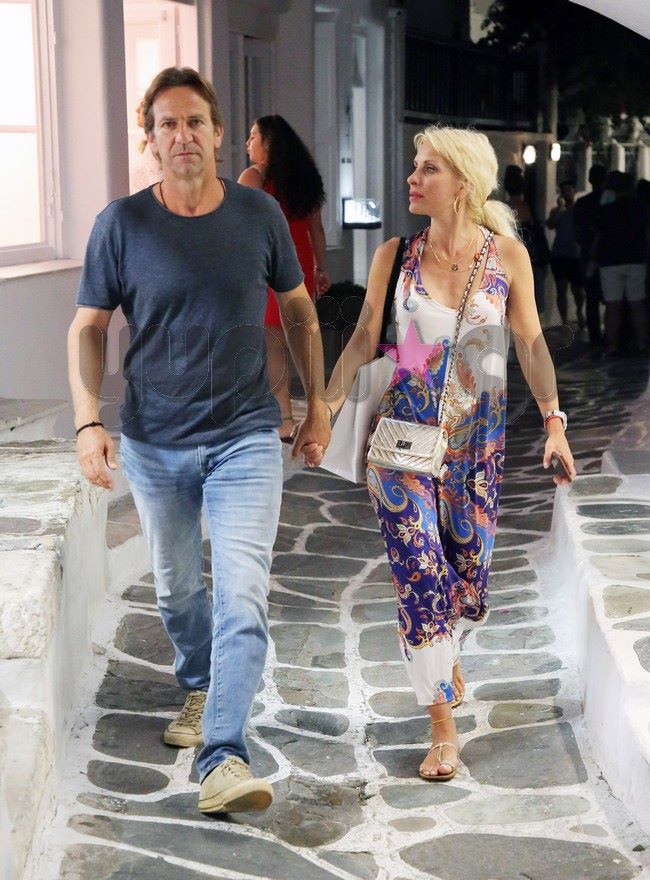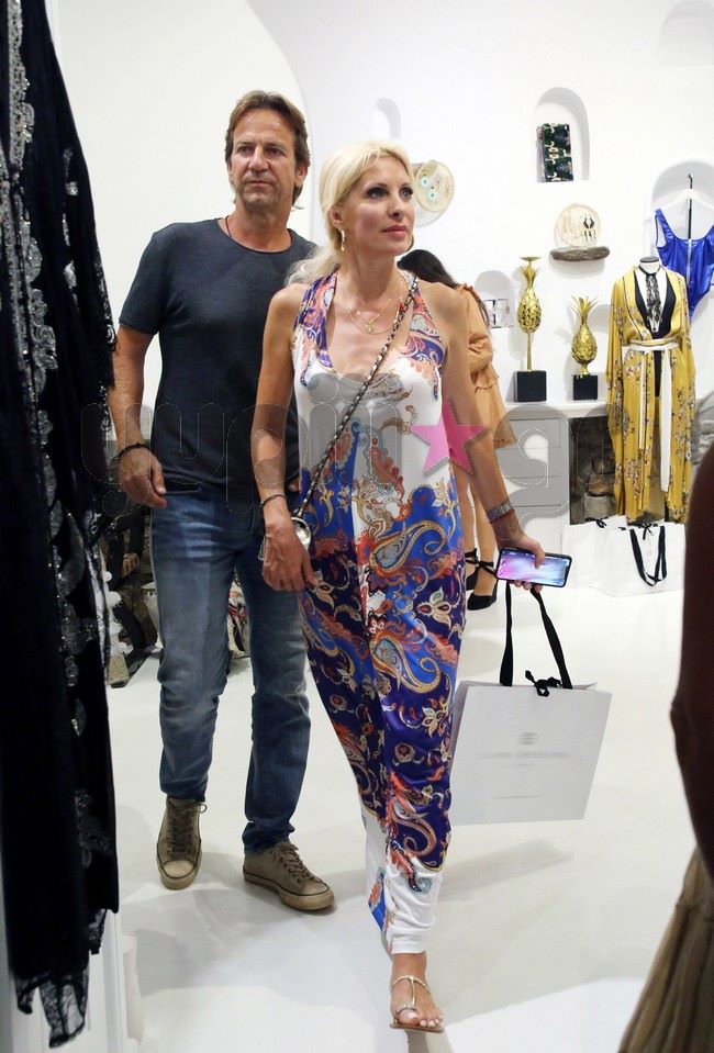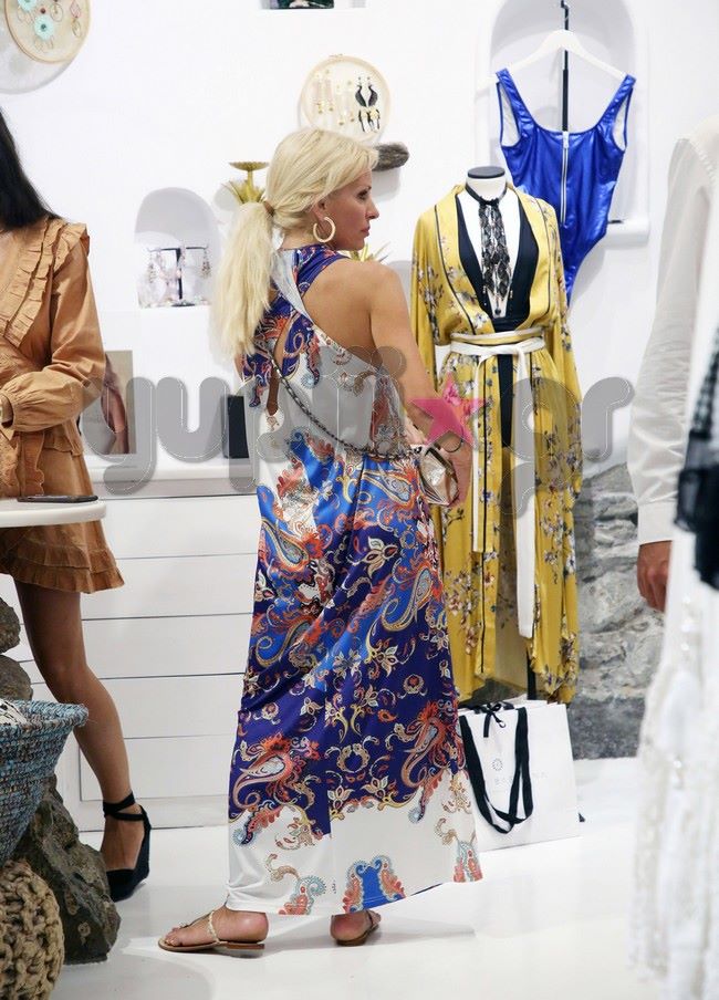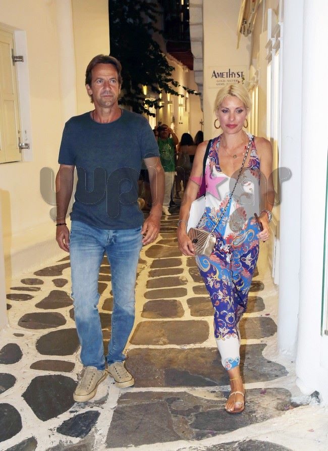 Με τον Μάκη Παντζόπουλο πάντα στο πλευρό της, η Ελένη Μενεγάκη έκανε τα ψώνια της στα μαγαζιά του νησιού, ενώ ο φωτογραφικός φακός του Yupiii τους απαθανάτισε να περπατούν στα Ματογιάννια χέρι - χέρι.