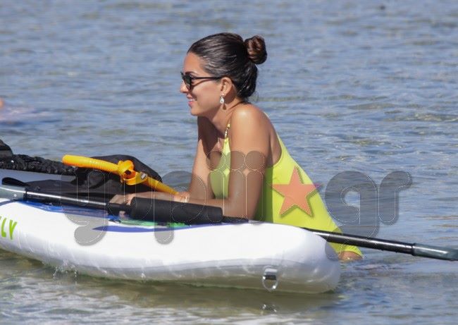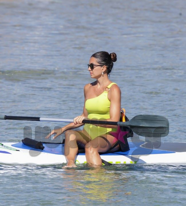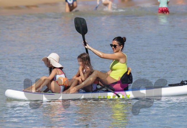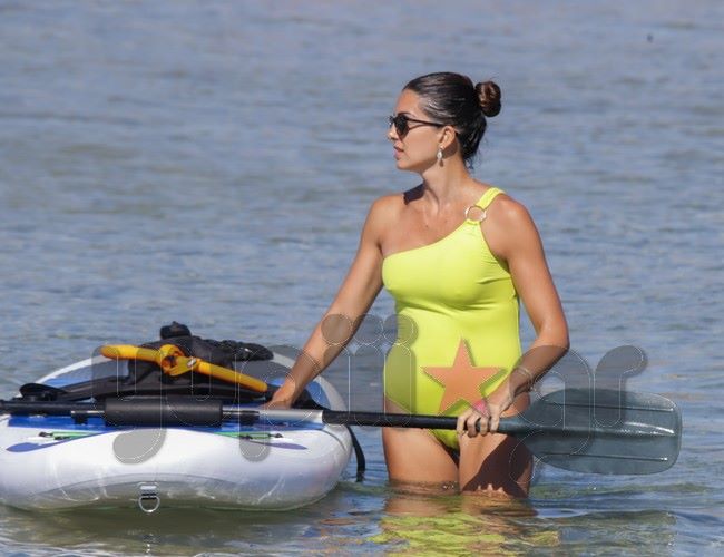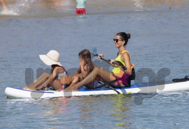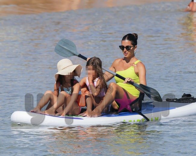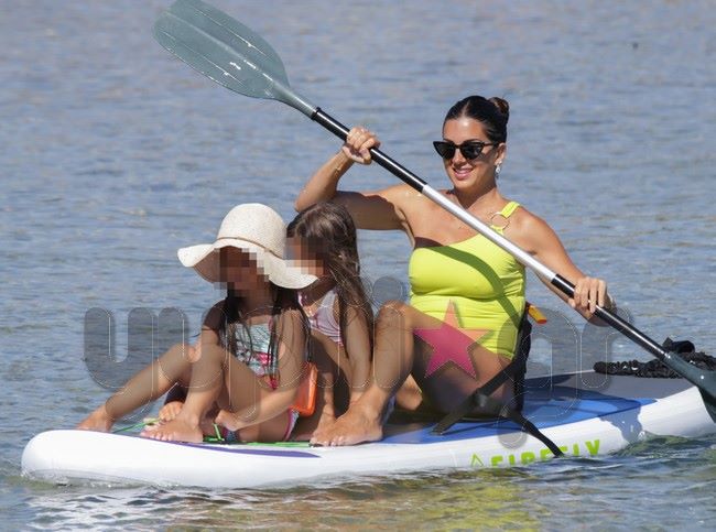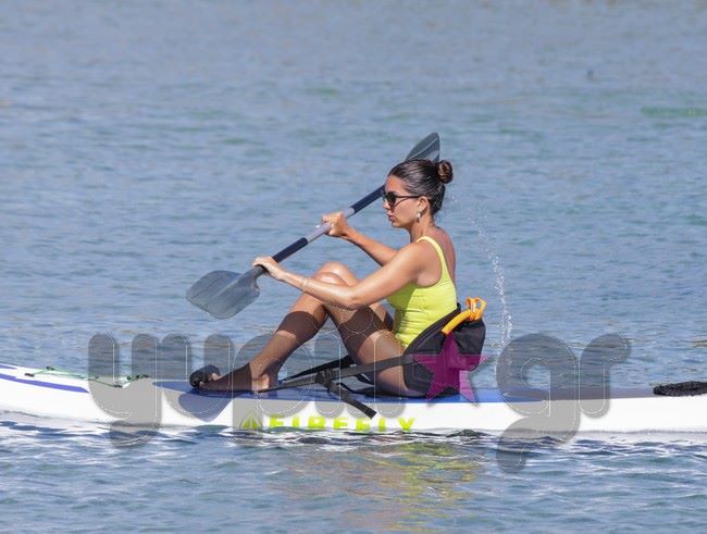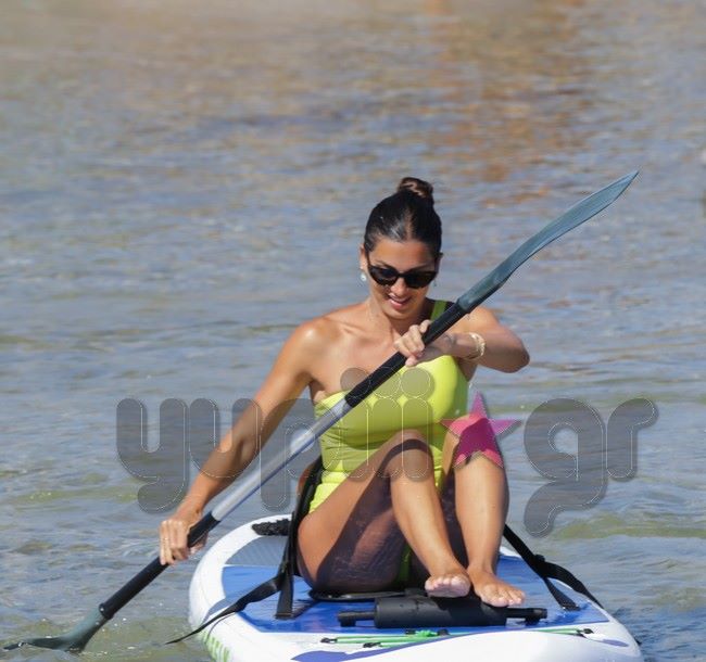 Ο φωτογραφικός φακός του Yupiii την εντόπισε σε μια από τις παραλίες του κυκλαδίτικου νησιού να επιδίδεται σε θαλάσσια σπορ έχοντας μαζί της τις δυο κόρες της.