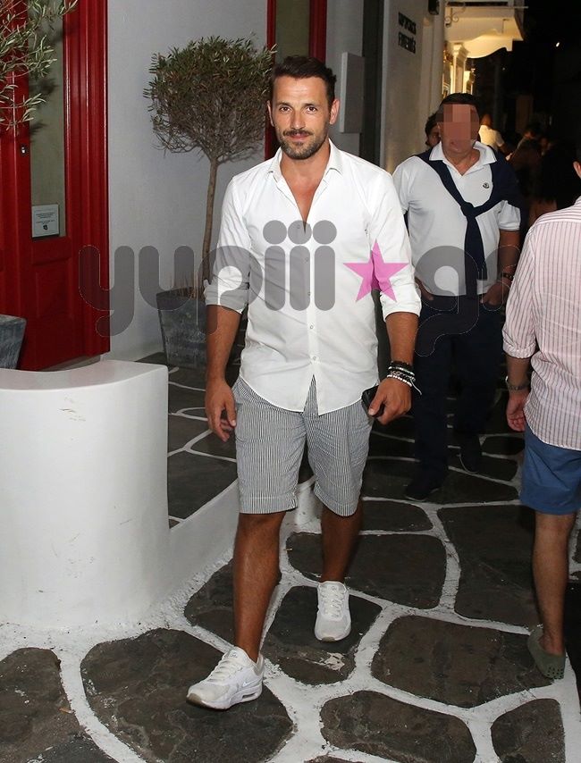 Ο φωτογραφικός φακός του Yupiii εντόπισε τον τραγουδιστή να κάνει βόλτα στα σοκάκια του νησιού, δείχνοντας αρκετά ευδιάθετος.