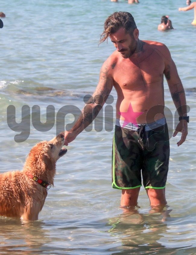 Ο φωτογραφικός φακός του Yupiii τον εντόπισε σε μια από τις στάσεις που έκανε στην Χαλκιδική. Μάλιστα ο παρουσιαστής δεν σταμάτησε να παίζει με την Μόλυ σε όλη την διάρκεια που παρέμειναν στην παραλία.