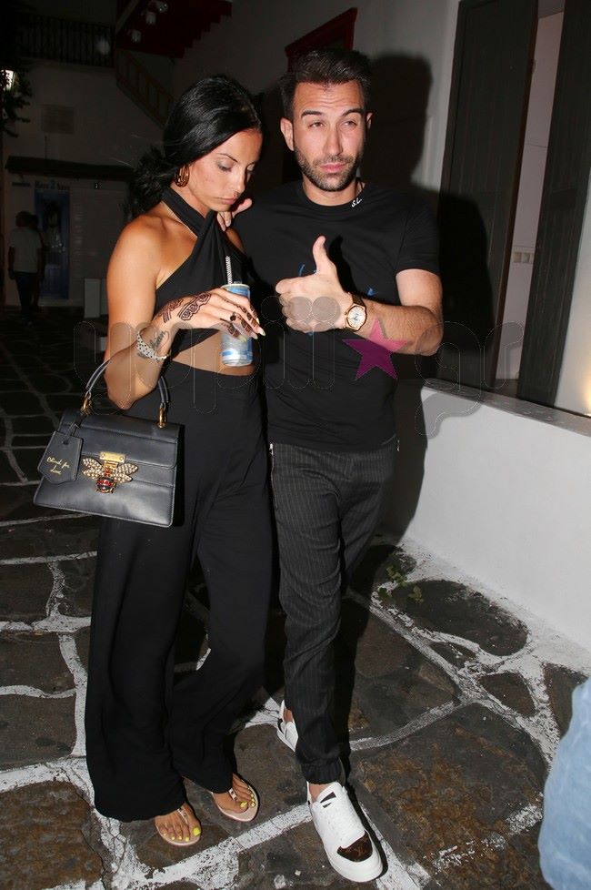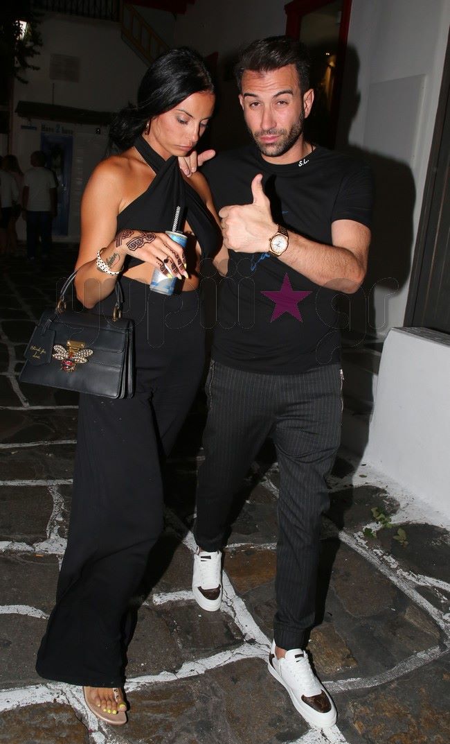 Οι δυο τους περπατούσαν στα Ματογιάννια αγκαλιασμένοι και αρκετά ευδιάθετοι, ενώ έδειξαν να μην ενοχλούνται από την παρουσία του φωτογραφικού φακού.
