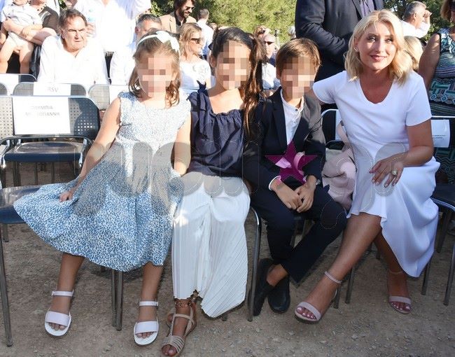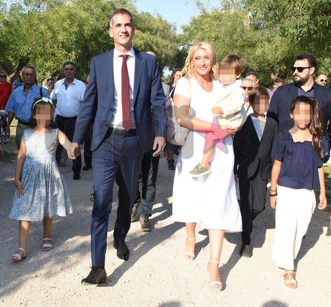 Ο Κώστας Μπακογιάννης έφτασε στην Ακαδημία Πλάτωνος συνοδευόμενος από τη σύζυγό του Σία Κοσιώνη και τα τέσσερα παιδιά του, Ολυμπία, Δανάη, Παύλο και τον μικρότερο Δήμο, καρπό του έρωτά του με τη γνωστή δημοσιογράφο.