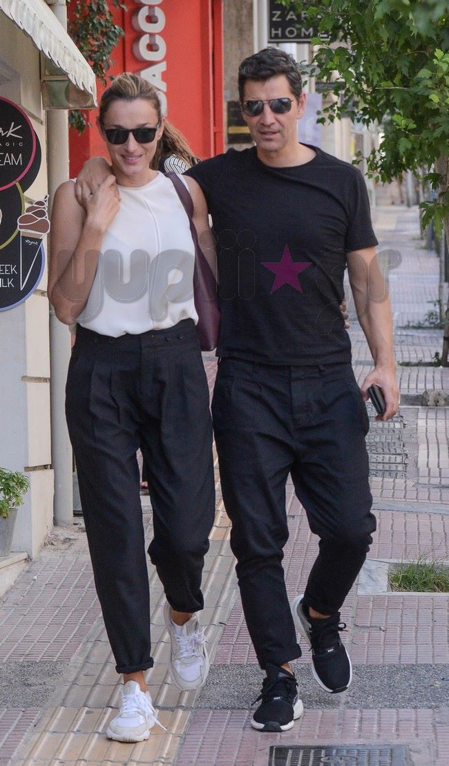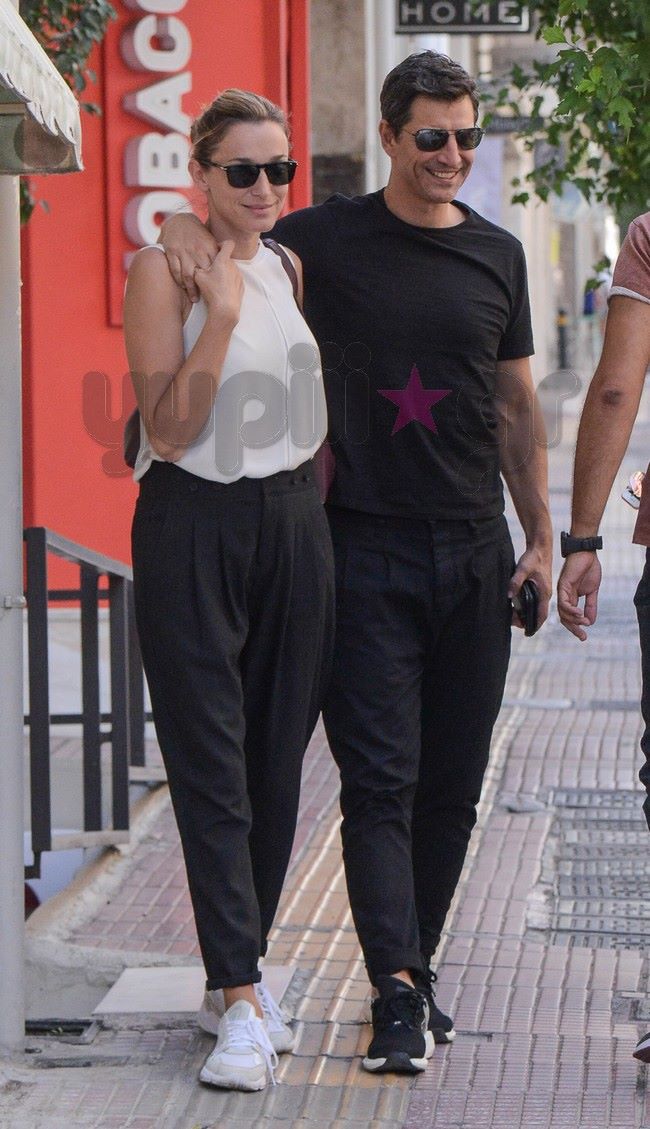 Ντυμένοι casual, αγκαλιασμένοι και αρκετά ευδιάθετοι απόλαυσαν τον περίπατό τους στο κέντρο της πόλης ενώ ο φωτογραφικός φακός τους εντόπισε σε cafe της περιοχής να απολαμβάνουν τον καφέ τους παρέα με φίλους.