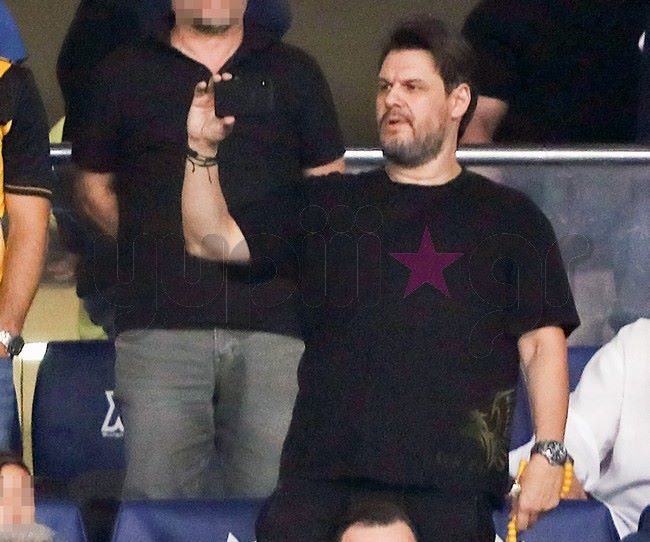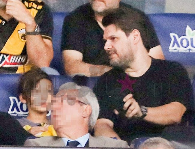 Αυτή τη φορά δεν ήταν μόνος, αφού επισκέφθηκε το ΟΑΚΑ μαζί με τον έναν από τους δυο γιους του και μαζί απόλαυσαν τον αγώνα ανάμεσα στην ΑΕΚ και τον ΠΑΟΚ από τις πρώτες σειρές το γηπέδου.