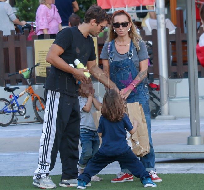 Με τα δίδυμα να πρωταγωνιστούν και να κλέβουν φυσικά την παράσταση, το ζευγάρι απόλαυσε χαλαρές στιγμές ενώ ο Αποστόλης Τότσικας συμμετείχε ενεργά στο παιχνίδι με τα παιδιά του στην παιδική χαρά του εμπορικού.