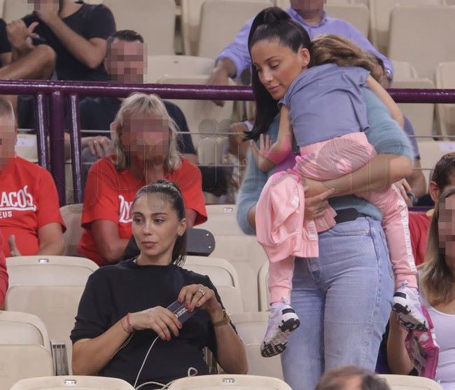Η πρώην Σταρ Ελλάς εθεάθη μαζί με την αδερφή της Βαλέρια και τα μεγαλύτερα παιδιά της στο Στάδιο Ειρήνης & Φιλίας προκειμένου να παρακολουθήσει από κοντά τον σύζυγό της Βασίλη Σπανούλη στον αγώνα μπάσκετ ανάμεσα στον Ολυμπιακό και τη Ζενίτ Αγίας Πετρούπολης.