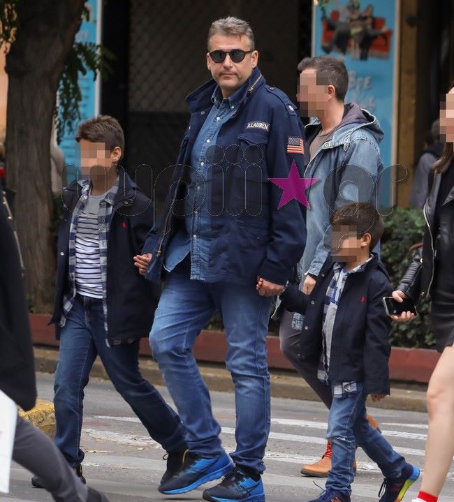 Ο παρουσιαστής με τους δυο γιου βρέθηκε στο Σύνταγμα και όλοι μαζί απόλαυσαν μια χαλαρή βόλτα σους δρόμους της Αθήνας.