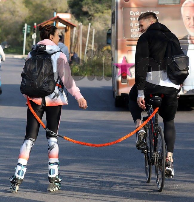 Tηρώντας πάντα τα μέτρα ασφαλείας και πριν επιβληθεί ο αυστηρός περιορισμός της κυκλοφορίας, οι δυο τους αποφάσιασαν να γυμναστούν μαζί και βρέθηκαν στη Βουλιαγμένη με τον γοητευτικό τερματοφύλακα να κάνει ποδήλατο και την εντυπωσιακή τραγουδίστρια να επιδεικνύει τις ικανότητές της στα rollers.