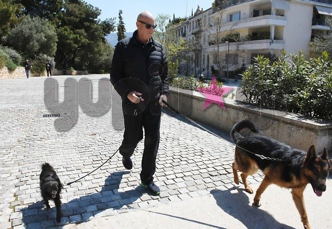 Έχοντας ξεπεράσει τόσο εκείνος όσο και η σύζυγός του Χριστίνα Κοντοβά την περιπέτεια με τον κορονοϊό, ο Τζώνη Καλημέρης εθάθη στη Διονυσίου Αεροπαγίτου να απολαβάνει μια χαλαρή βόλτα με τα δυο του σκυλιά χαμογελαστός και ευδιάθετος.