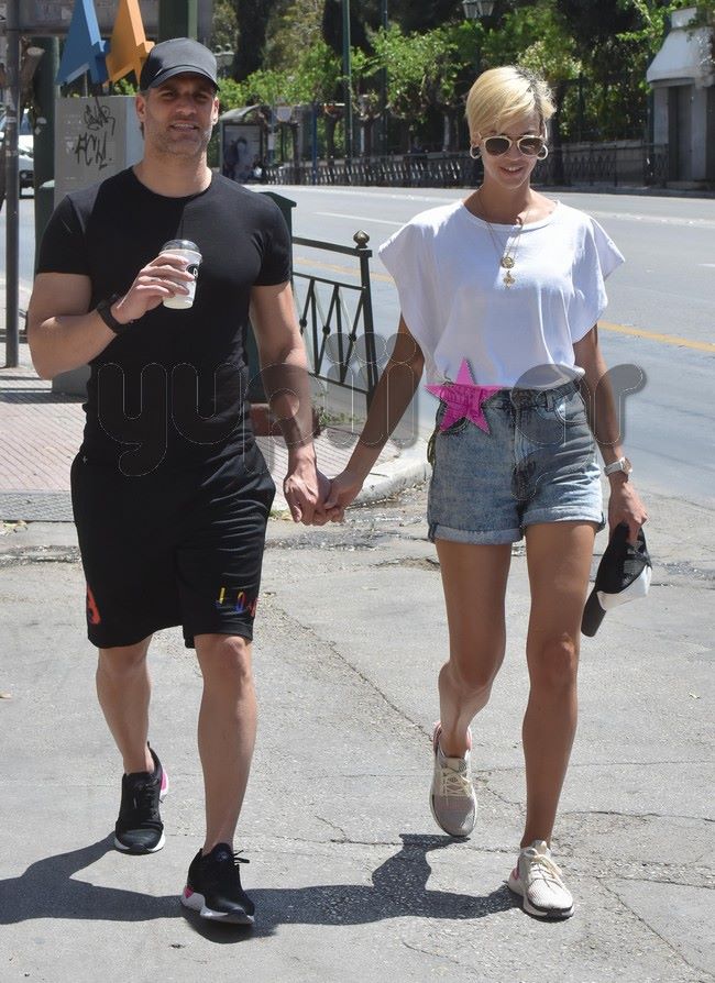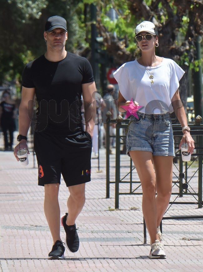 Χαλαροί και ευδιάθετοι, οι δυο τους περπάτησαν στους δρόμους του Κολωνακίου πίνοντας τον καφέ τους στο χέρι και μαγνήτισαν τα βλέμματα με την καλοκαιρινή εμφάνισή τους.
